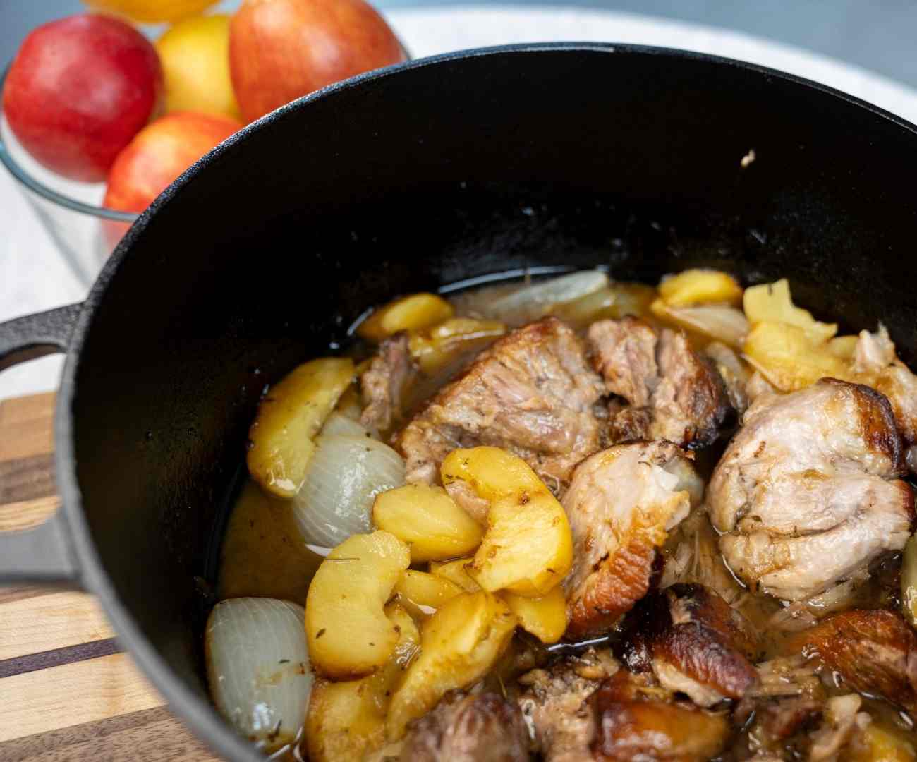 Natural sweetness: As the cider cooks, its sugars concentrate and enhance the pork’s savory richness.