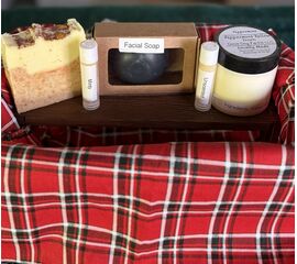 Looking for the perfect holiday present? Or the perfect samplier box for any occasion? Try our large holiday tallow box! It contains 1 bar of soap, 1 large facial bar of soap, 2 ChapSticks and a 4 oz tallow lotion.