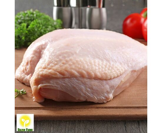 $6.49/lb - balance due at pick-up. Whole bone in breast 1 per package, at an average of 6 lbs per package.