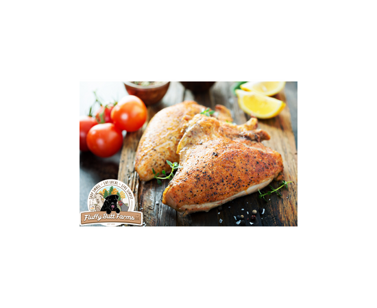 At Fluffy Butt Farms, we’re all about quality and care. Our chickens are pasture-raised with plenty of space to roam, ensuring they’re happy, healthy, and free from antibiotics and hormones. You’re not just getting delicious meat—you’re getting a piece of our commitment to sustainable, ethical farming. So, fire up that oven or grill, and let these bone-in chicken breasts steal the show at your table! Order yours today from our website or swing by our online store at Market Wagon for a taste of Fluffy Butt Farms’ finest.