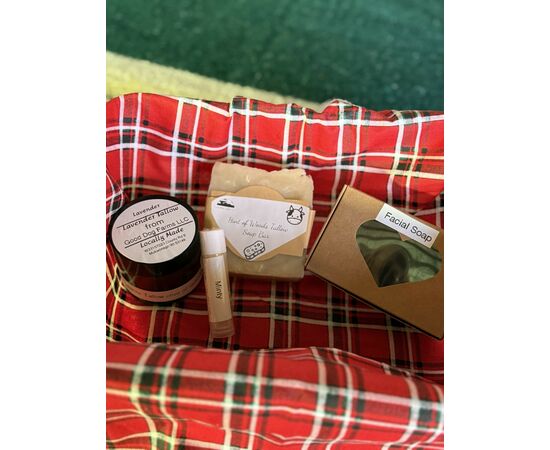 Looking for the perfect gift? Try our Medium Holiday Tallow box. This box contains 1 2 oz lotion, 1 full soap, 1 facial soap and 1 ChapStick.
