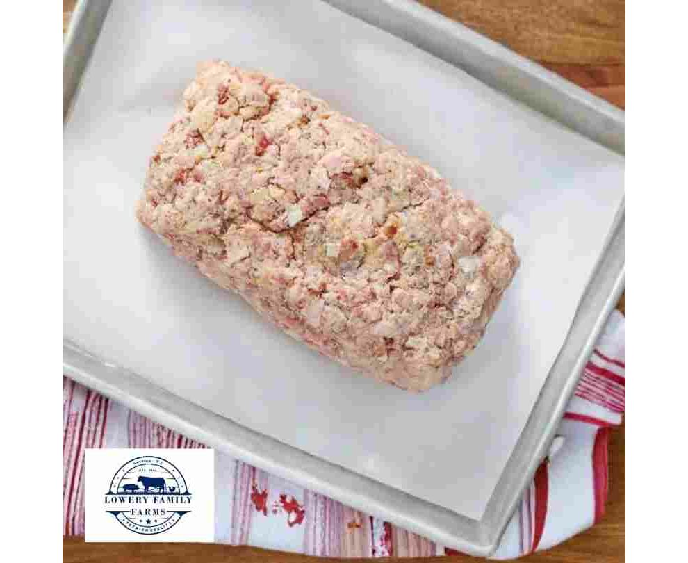 Ground pork, smoked ground ham, egg, oatmeal and seasonings. CONTAINS EGGS.