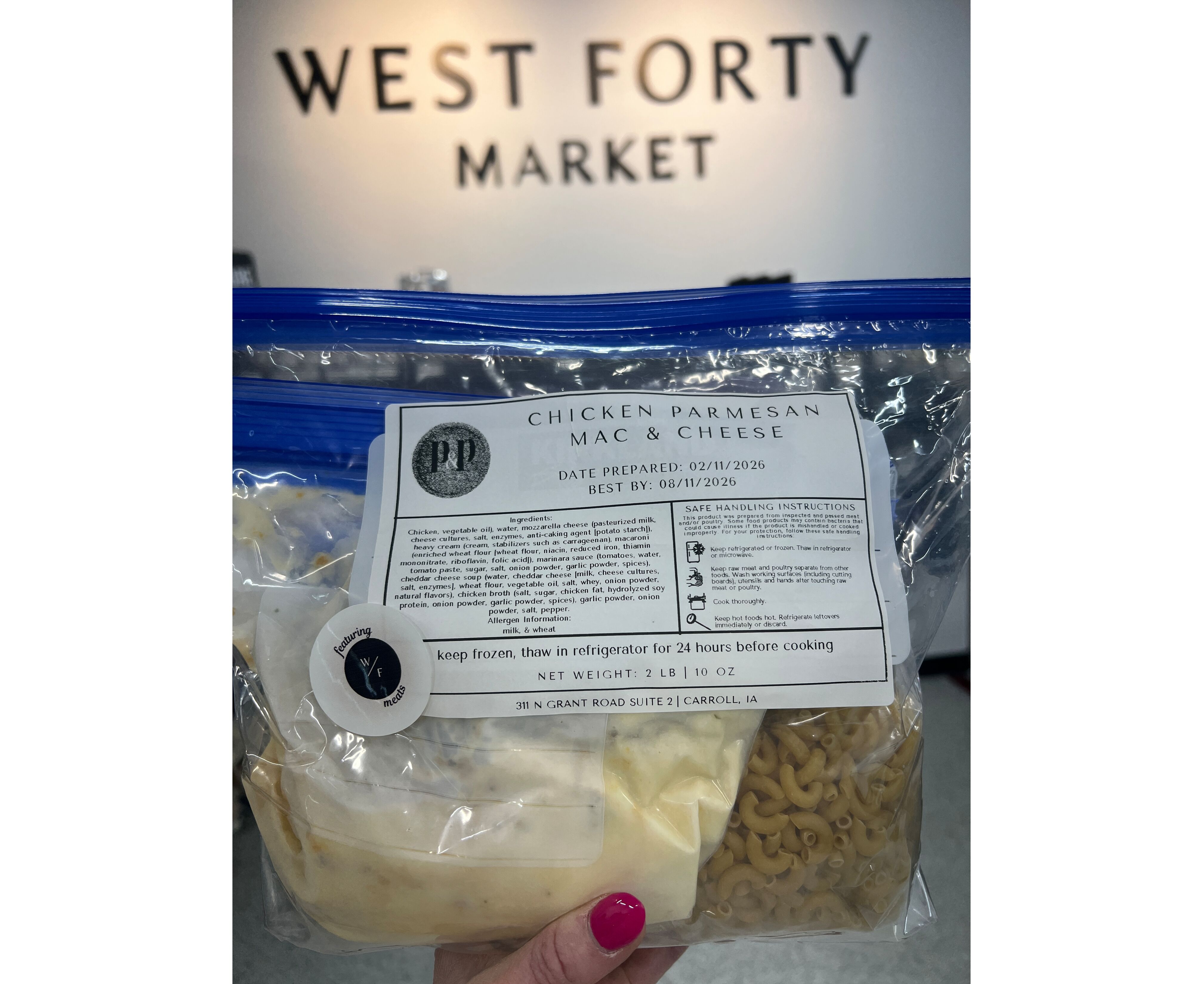After being a full time vendor at the Des Moines Farmers Market and offering delivery around the metro, Teresa (their daughter) decided to open her own retail store in Ankeny, IA in May 2021. West Forty Market is located in Uptown Ankeny and features over 120 cuts of beef, pork, chicken, bison, lamb and turkey - all raised on local Iowa farms and butchered in Iowa. We also feature over a dozen local products, including pasta, rubs, sauces and honey.