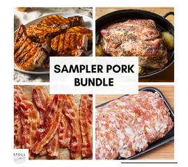 Try our pork all raised on our farm. Farrow to Finish Sampler Pork  Bundle includes 8 Bone in Pork Chops, 1 Shoulder Roast -3 - 4 lbs, 2 lbs Uncured Bacon, 5 lbs Sausage
